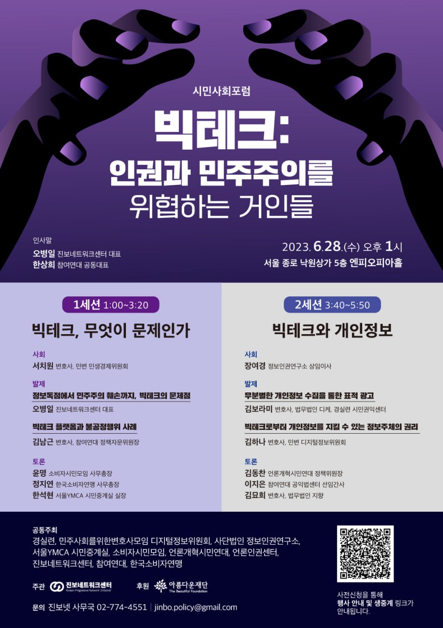 시민사회포럼 “빅테크: 인권과 민주주의를 위협하는 거인들” 개최