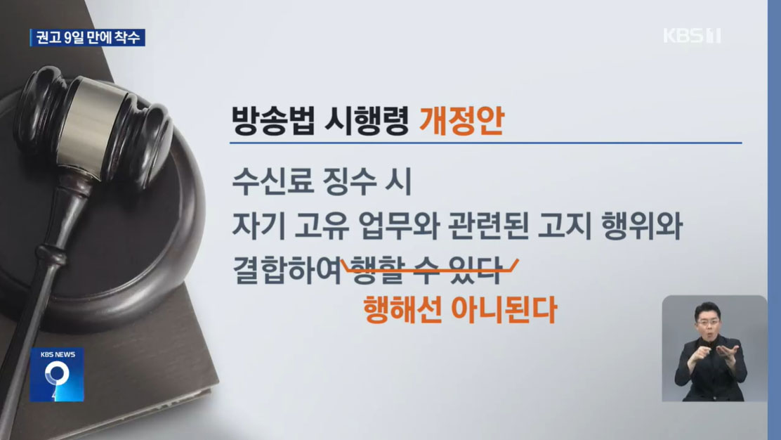 방송통신위원회가 우려대로 일을 저질렀다. 6월 16일 TV수신료 분리 징수를 위한 방송법 시행령 일부 개정령 안을 입법 예고하고 나선 것이다. 대통령실이 조치 ‘권고’한지 겨우 열흘이 지나 전광석화처럼 이루어진 일이다. 방통위 전체 회의 개정안 상정, 안건 접수 후 불과 이틀 만의 조치다. 명백한 졸속처리다.