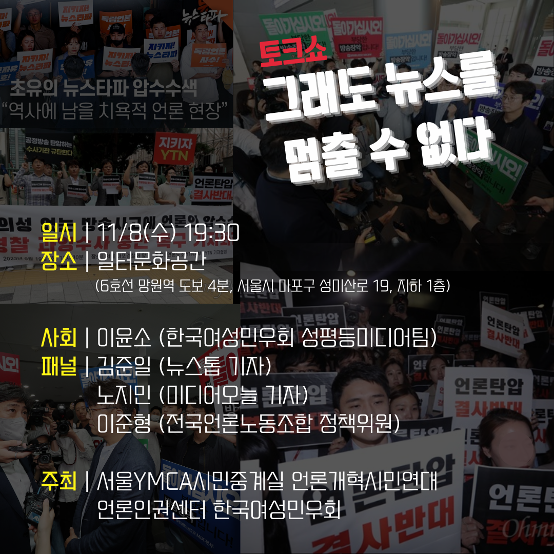 주최: 서울YMCA 시민중계실, 언론개혁시민연대, 언론인권센터, 한국여성민우회