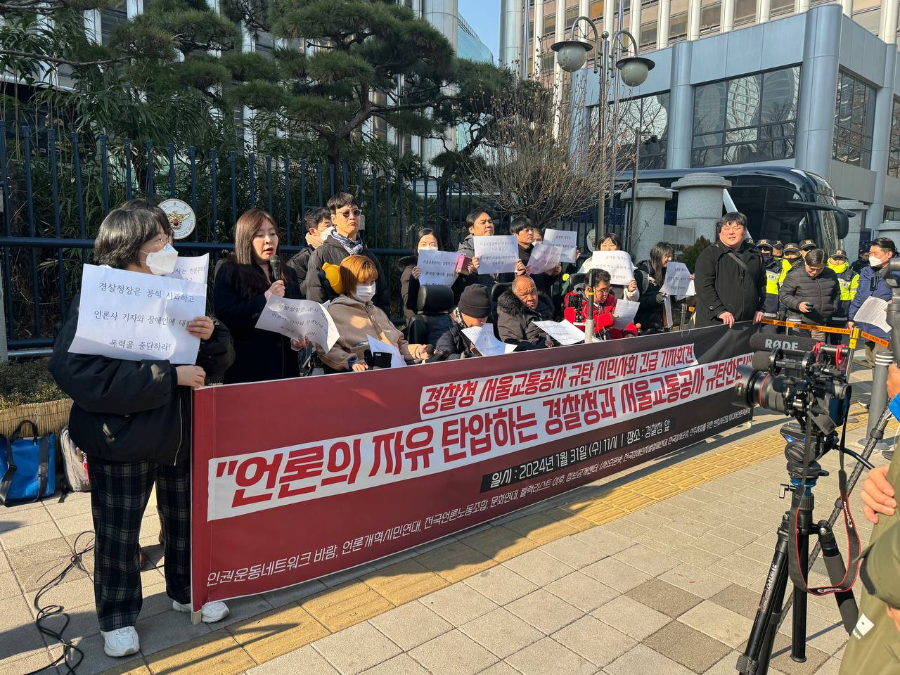 - 경찰청장은 공식 사과하고 경찰은 언론사 기자와 장애인에 대한 폭력을 중단하라! 헌법과 집시법이 보장하는 집회시위의 권리, 표현의 자유 보장하라!
