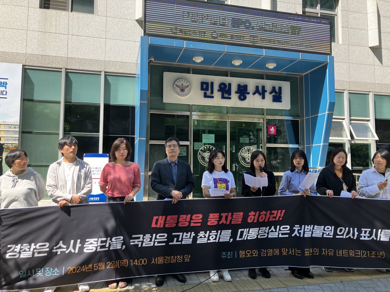 21조넷은 요구한다. 대통령에 대한 풍자를 허하라! 윤석열 대통령 양심고백 영상에 대한 경찰의 수사는 즉각 중단돼야 한다. 국민의힘은 총선으로 나타난 민의를 수용해 대통령에 대한 명예훼손 고소고발을 취하하라. 그리고 이번 사건의 가장 큰 책임자이자 당사자인 윤석열 대통령은 수사를 받고 있는 시민들에 대해 처벌불원 의사를 밝혀라. 이것이야 말로 한국 사회가 더 이상 누군가의 조롱거리로 전락하지 않을 유일한 길이다.