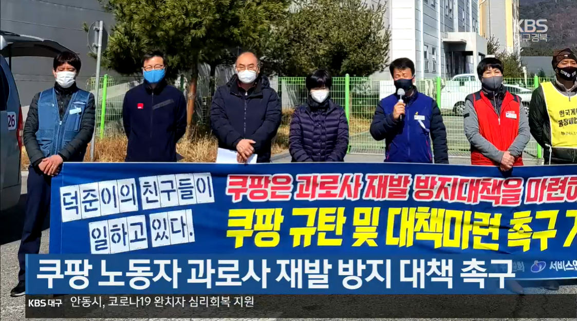 우리는 쿠팡 사업장에서 2020년 코로나19 확산 이후 6명의 노동자들이 사망한 것에 주목한다. 쿠팡발코로나피해자대책위원회는 지난해 10월 <쿠팡 코로나 노동자 인권실태 조사 보고서>를 발표했다. 그에 따르면, 쿠팡의 노동환경은 “대부분 계약직·단기일용직인 물류센터 노동자들은 언제 어떤 자리에서 누구와 일하게 될지 예측 불가능”할 뿐 아니라, “고용 불안정으로 인한 증상자 파악의 어려운 조건(계약직 사원 중 아파도 병원에 가지 않고 출근 사례)”이라는 비판을 받았다. 이에 대책위는 “쿠팡의 집단감염은 갑자기 일어난 우연한 사건이 아니라 무권리 상황의 안전하지 못한 일터가 만들어낸 재난”이라고 총평했다. 근로복지공단은 또한 지난 9일 쿠팡 대구물류센터에서 심야근무 후 사망한 고 장덕준 씨에 대해 ‘시간당 생산량(UPH) 측정 시스템’ 등 강도 높은 노동으로 인한 업무상 재해임을 인정했다. 쿠팡 내 노동환경에 대한 전면적인 개선이 필요하다는 얘기다.