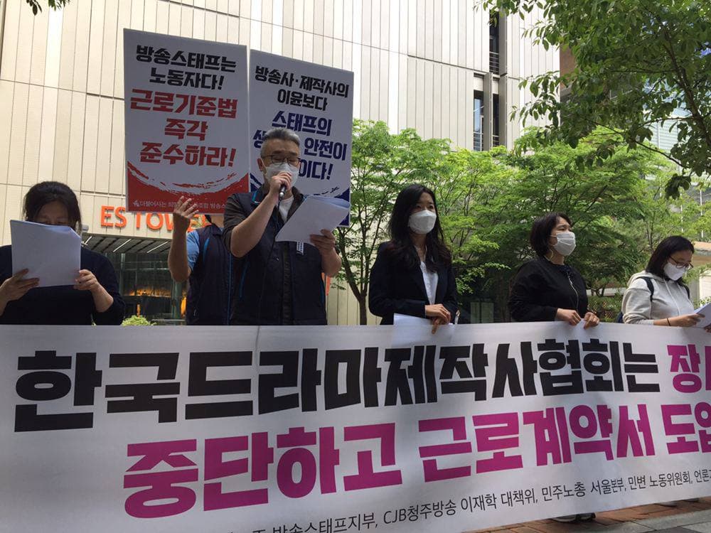 2019년 6월, 지상파 3사(KBS·MBC·SBS)와 전국언론노동조합, 한국드라마제작사협회, 희망연대노조 방송스태프지부가 참여한 ‘지상파방송 드라마 제작환경 개선 공동협의체(4자협의체)’는 <지상파방송 드라마제작환경 가이드라인 기본사항>에 합의했다고 밝혔다. 해당 기본사항에 ‘드라마 스태프 표준근로계약서 체결’이 포함되면서 호평을 받기도 했다. 그 당시 나왔던 우려를 정확히 기억한다. ‘지상파 드라마 제작 환경만 좋아지면 어쩌냐’는 점이었다. CJ ENM과 JTBC 등 타 방송사업자들의 동참이 과제로 남았다는 평가가 뒤따랐던 이유다.