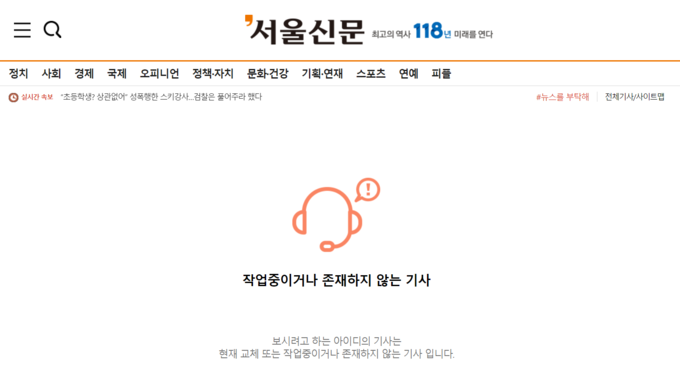 대주주가 바뀌자 기사가 없어졌다. 사라진 기사는 호반건설의 편법승계 의혹 등을 고발한 시리즈로, 모두 50여건에 달한다. 17일 자사 홈페이지와 포털 사이트에서 전부 삭제됐다. 호반그룹이 대주주로 들어선 <서울신문>에서 벌어진 일이다.