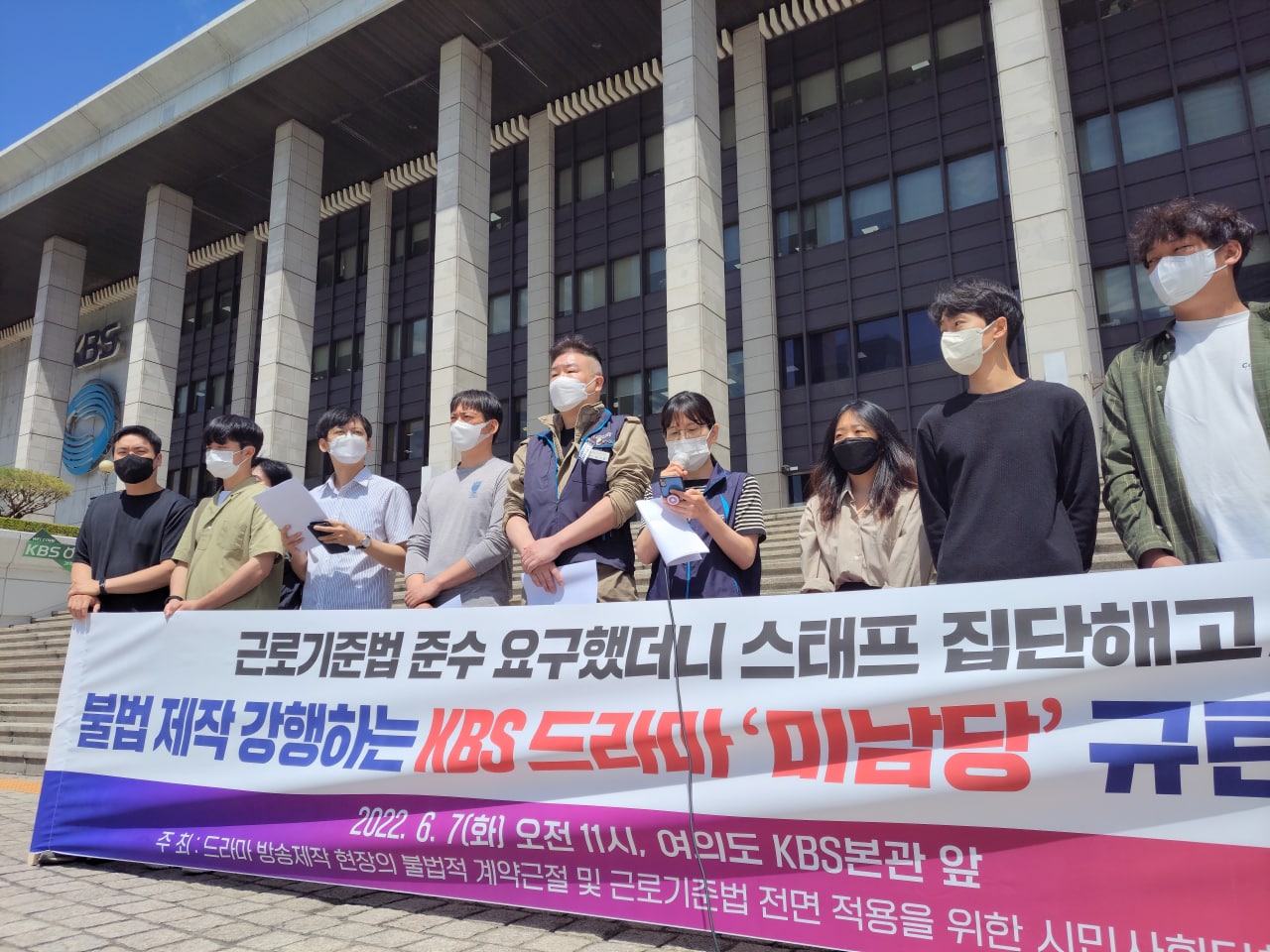 하나, KBS는 원청으로서 책임을 통감하고 제작사의 잘못된 행태를 바로잡을 것을 촉구하며, 끝까지 ‘미남당’이 불법적으로 촬영된다면 6월 27일 예정된 방영을 즉각 중단할 것을 강력히 요구한다!