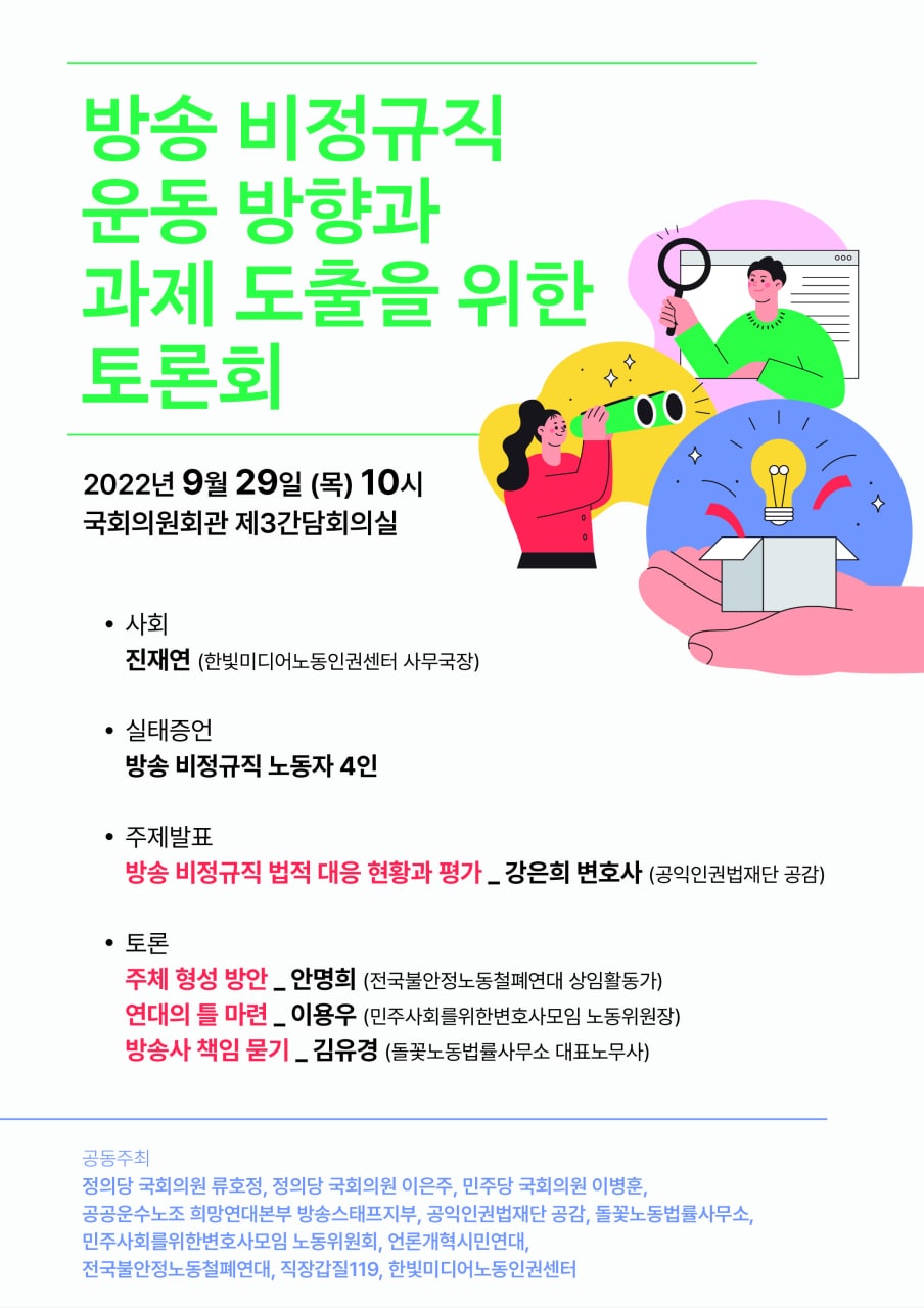 [보도자료]방송 비정규직 운동 방향과 과제 도출을 위한 토론회&증언대회